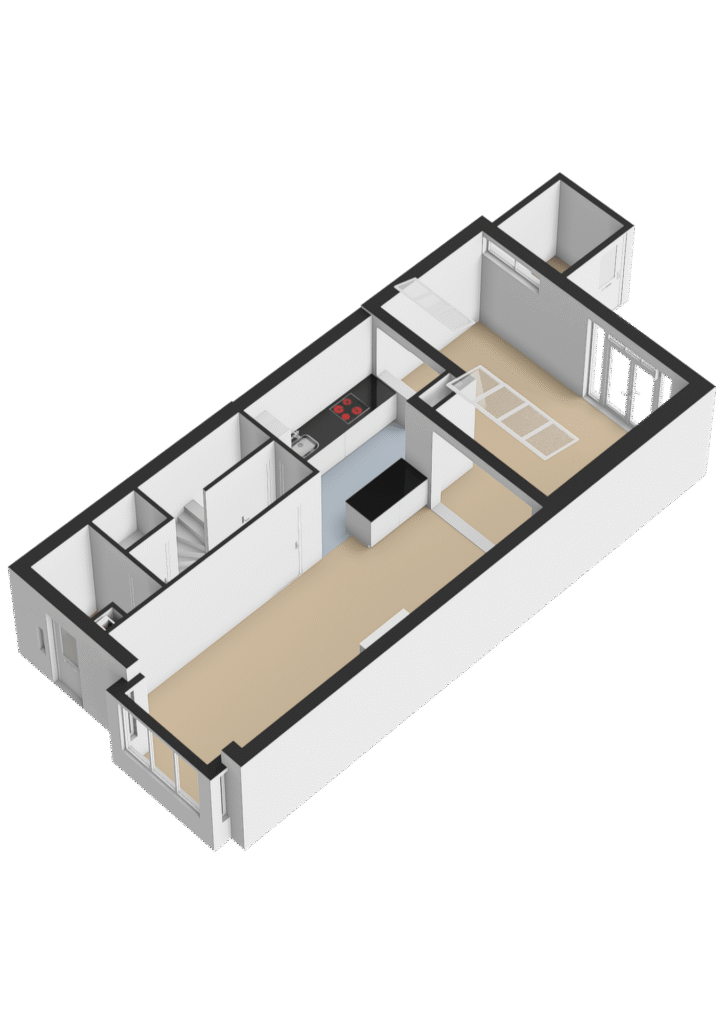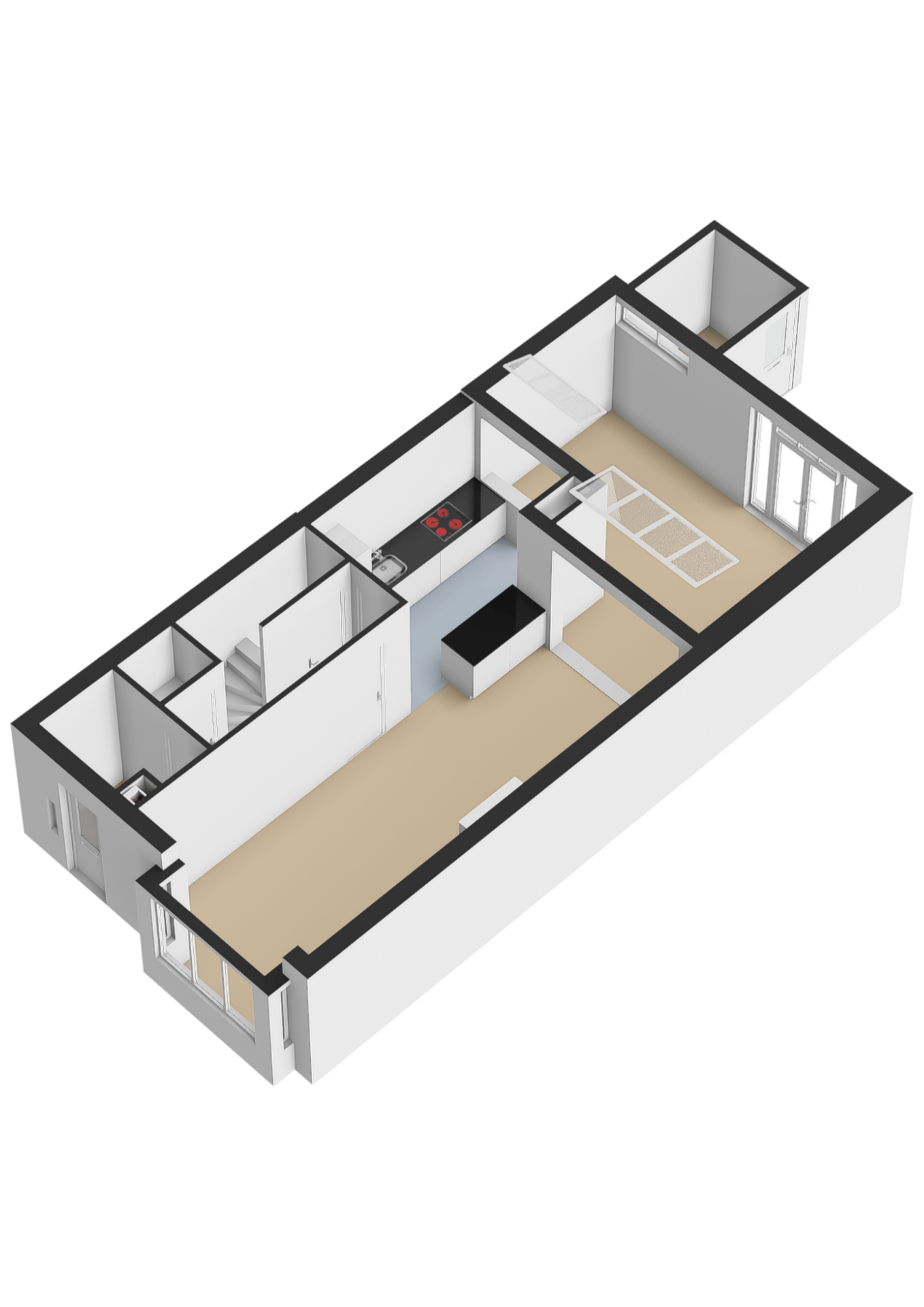 KEUKEN De lichte keuken is voorzien van een authentieke terrazzovloer en een modern keukenmeubel met diverse inbouwapparatuur, waaronder een inductiekookplaat en een koelvriescombinatie. Een bijzonder detail zijn de berkenhouten lades aan de binnenzijde. Daarnaast is een originele inbouwkast behouden gebleven, wat bijdraagt aan het karakter van de woning. Aan de achterzijde van de woning is ruimte voor een speelhoek of extra zitgedeelte. Via de openslaande deuren bereik je de tuin, waardoor binnen en buiten mooi met elkaar verbonden zijn.