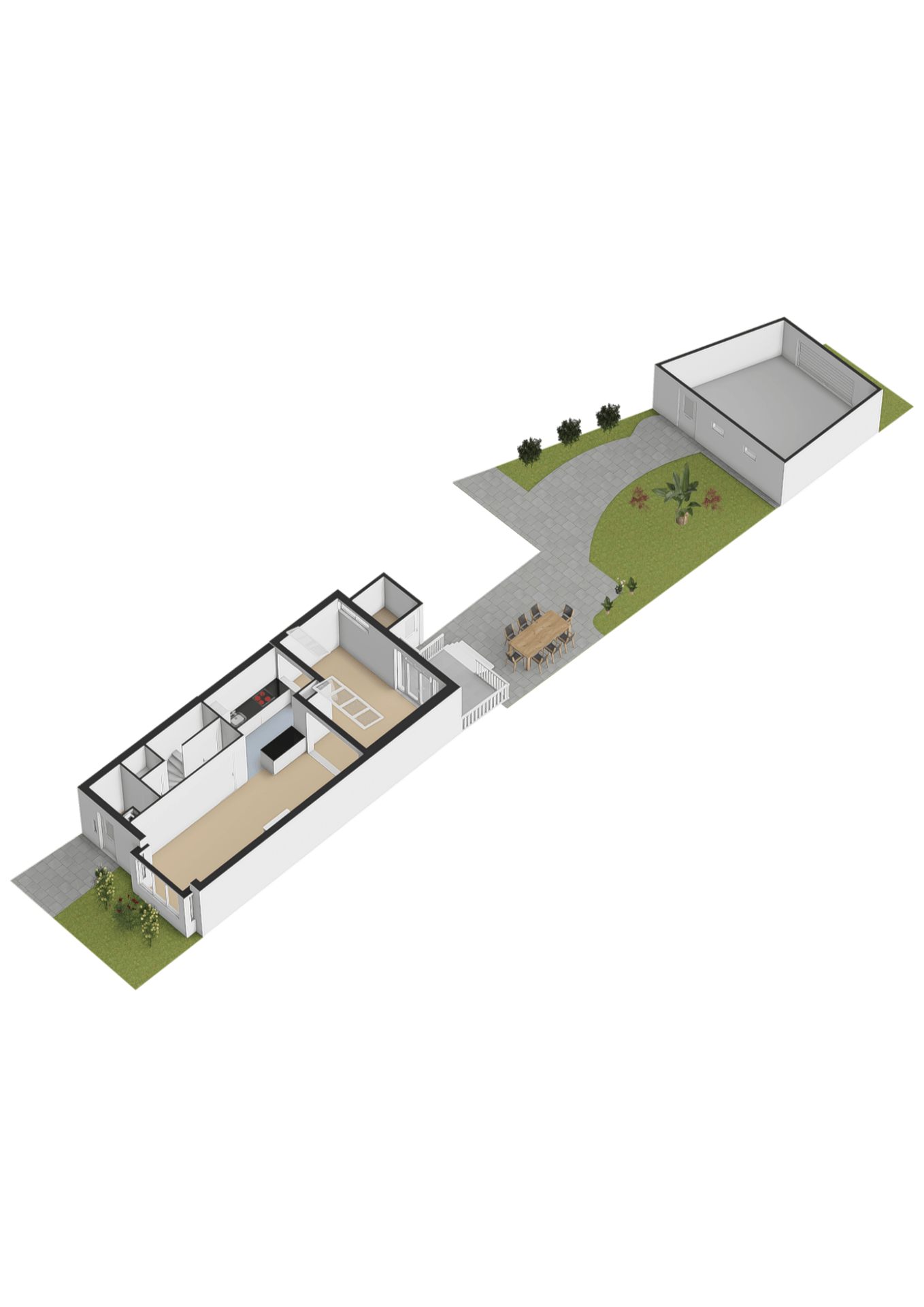 TUIN De achtertuin is gelegen op het noorden en bereikbaar via de openslaande deuren in de leefruimte. De ruime, rustig gelegen tuin biedt veel privacy en is verzorgd aangelegd met een terras van klinkers. Op ieder moment van de dag kun je hier van de zon genieten. De beplanting, zoals leibomen, een rozenstruik, hortensia’s en een red robin, zorgt voor een groene en sfeervolle uitstraling. De tuin beschikt over een berging, een achterom aan de zijkant en geeft tevens direct toegang tot de royale garage.